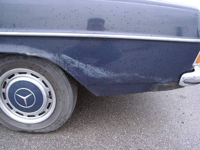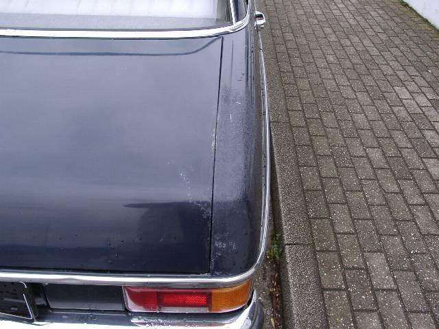 Doch halt: der Verkäufer machte von sich aus auf den einzigen nennenswerten Mangel des Fahrzeugs aufmerksam: er hatte eine falsche Farbe! Der Vorbesitzer hätte den Wagen bereits vor einigen Jahren umlackieren lassen, leider aber in einem Farbton der für den /8 niemals erhältlich gewesen sei und erst mit dem W123 herausgekommen wäre. Einen "echten Puristen" würde das natürlich sofort abschrecken, aber wenigstens sei die (goldene) Lackierung GAANZ HERVORRAGEND gemacht worden, in eine DB-Niederlassung von einem echten Könner – der Lackaufbau wäre jedenfalls tadellos.