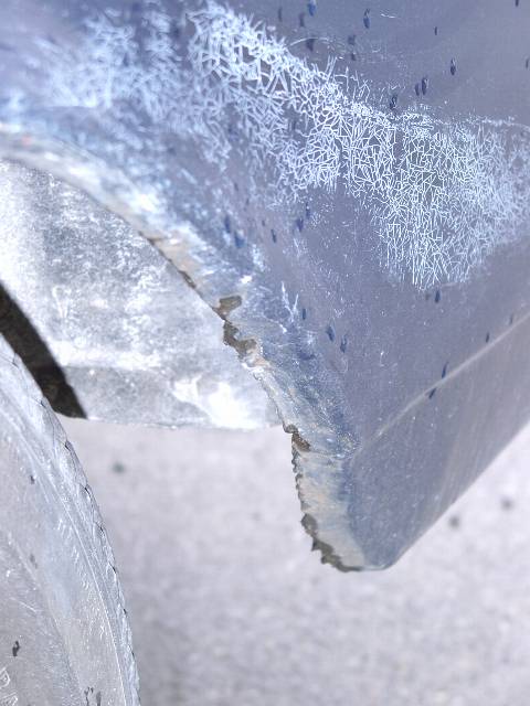 Ich schritt zur ersten Bestandsaufnahme: beide Radläufe hinten waren völlig rostfrei – aber leider ließen sie auch meinen mitgebrachten Magneten völlig unbeeindruckt. Sie mußten zu 100 % aus Glasfaser bestehen.